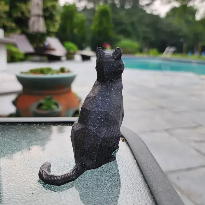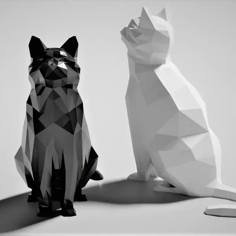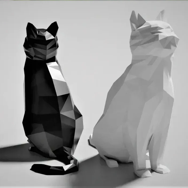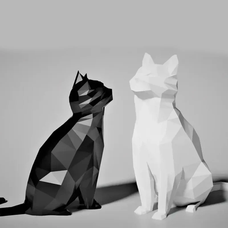 Cat Statue 3D Printed Animal Figurine Geometric Resin Sculpture Home Office Desk Decor Creative Gift Ornament